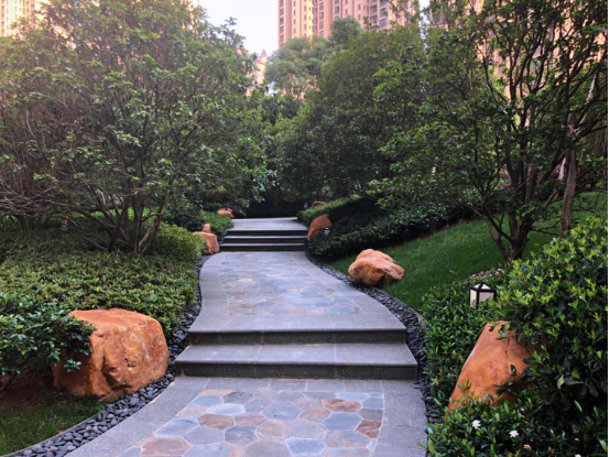 傳統(tǒng)的冰裂紋鋪裝發(fā)展至今??杀环譃樗槠春捅鸭y兩種。碎拼亦名亂拼,是指在施工中,造園者用錘把大塊石材敲成碎塊,有時候也巧用石材廢料,鋪設成異形圖紋樣式。碎拼中相鄰板材之間的縫是自然的。縫寬不一。通常為10-30mm。上述鋪裝樣式較為粗獷、富有野趣。常應用于自然式園路或者小尺度的廣場節(jié)點。冰裂紋。則可理解為將一個完整的大冰塊敲擊生出成千上萬個裂紋。裂紋間的縫隙較小且均勻。冰裂紋一般是由規(guī)格板材經(jīng)精密切割而成,做工比碎拼更為精致,但加工難度大,因此很難看到大面積的冰裂紋鋪裝。